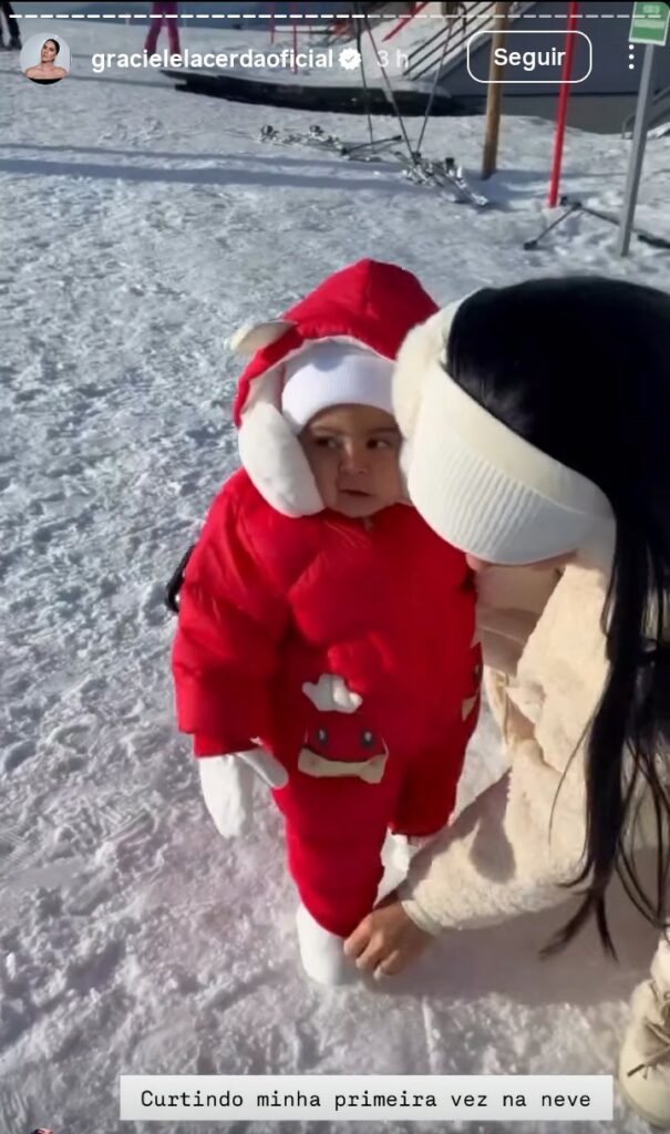 A pequena Clara, filha de Graciele Lacerda e Zezé Di Camargo, de um ano, viveu sua primeira experiência na neve. Nesta terça-feira (20), o casal usou as redes sociais para compartilhar registros do momento especial, mostrando a reação da bebê ao conhecer um cenário de frio intenso pela primeira vez.