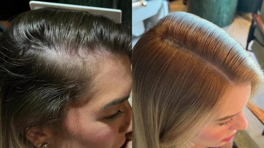 Meses depois, a médica exibiu os resultados e destacou a dedicação da paciente: os fios aparecem mais fortes, encorpados e saudáveis. Segundo a profissional, não houve uso de química, apenas uma tonalização leve, com manutenção rigorosa do tratamento.