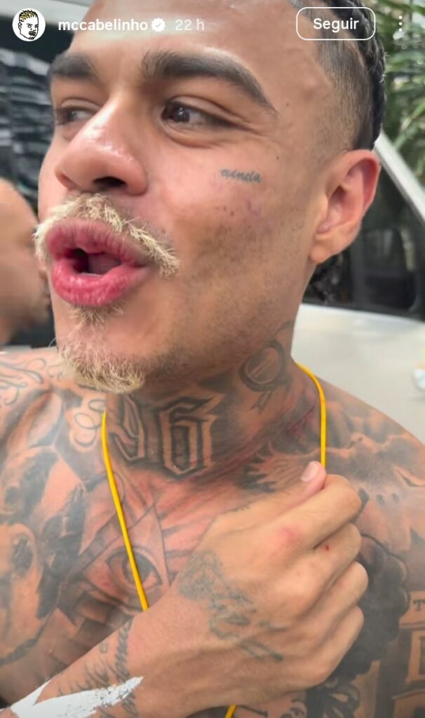MC Cabelinho apresentou um ferimento no pescoço após uma possível tentativa de roubo registrada no Pelourinho, em Salvador, no último domingo (7).