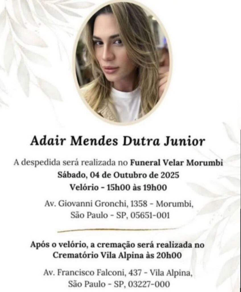 Velório Junior Dutra, influenciador (Foto: Instagram)