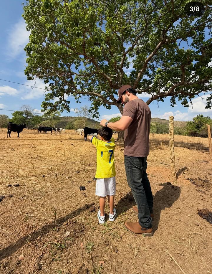 Há poucos dias, Murilo compartilhou momentos de Léo participando dos cuidados com uma vaca da Nelore Ruff, empresa da qual o cantor é sócio. Nas imagens, ele orienta o filho a usar uma mangueira para jogar água no animal e comentou que o menino já está aprendendo desde cedo a assumir responsabilidades no futuro.