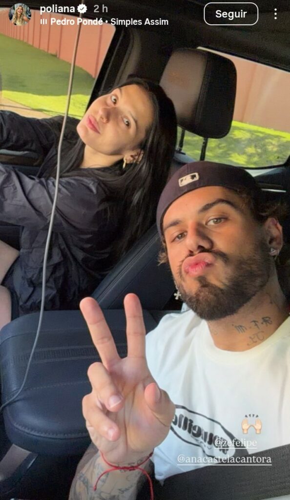 No Instagram, a esposa de Leonardo, publicou uma foto do filho Zé Felipe, mas o registro ganhou destaque por outro motivo. O cantor não apareceu sozinho: ao seu lado estava Ana Castela. Na legenda, Poliana marcou apenas os dois artistas e adicionou emojis de mãos levantadas, em sinal de agradecimento.
