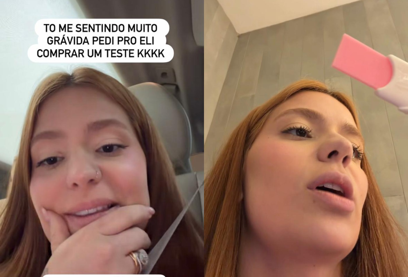Em sua declaração, a influenciadora disse: “Gente, eu tô tão neurada que falei pro Eli comprar um teste de gravidez. A chance de eu estar grávida é tipo menos um, porque ele é vasectomizado e eu tô com anticoncepcional hormonal. O teste deu negativo, vocês conseguem ver nos stories, mas eu tô me sentindo grávida, tô muito enjoada, com muito sono. No fim, não tô grávida, tá tudo certo, mas que susto.”